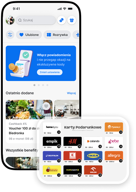 Moduł “Sklep” w aplikacji dla pracowników to miejsce, gdzie pracownicy mogą wymieniać zgromadzone e-monety na atrakcyjne nagrody i benefity. W ofercie znajdują się vouchery do popularnych sklepów, karty sportowe oraz inne ciekawe opcje, które podnoszą komfort życia i motywują do pracy.